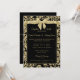 El damasco negro y dorado y el diseño del arco imprimen la invitación a la boda con toda la información importante incluyendo los detalles de la recepción en la invitación principal. El damasco de oro de inspiración vintage es atemporal, a la vez moderno, formal y romántico.