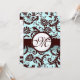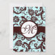 Invitación Damasco marrón profundo Aqua -Monograma más grande