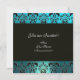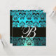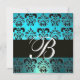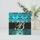 Invitación DAMASCO MONOGRAMA AZUL NEGRO , turquesa blanco
