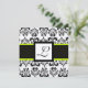 Diseño de damasco elegante y con clase con una franja verde amarillenta brillante de Bulgan Lumini (c) . Fácil de personalizar con tus iniciales y texto propio como tarjeta de anuncio / tarjetas de lugar / tarjetas de save-the-date / tarjetas de agradecimiento, duchas de novia, cumpleaños, fiestas, duchas de compromiso, o casi cualquier evento que desees!