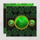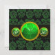 Diseño elegante, clásico y único con piedra preciosa verde brillante. Fácil de personalizar con tus iniciales y texto propio como anuncio de fiesta del Día de San Patricio (St Patty), tarjetas de lugar, save-the-date, tarjetas de agradecimiento, duchas de novia, cumpleaños, fiestas, duchas de compromiso, o casi cualquier evento que desees. Modelado y renderizado nurbs muy precisos por Bulgan Lumini (c). Parte de la serie Hyper Talismans.