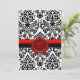 INVITACIÓN DAMASCO NEGRO Y BLANCO, SELLO DE LACA ROJA CON MON