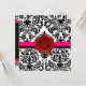 INVITACIÓN DAMASCO NEGRO Y BLANCO, SELLO DE LACA ROJA MONOGRA