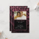 Elegante invitación de duodécimo aniversario de boda en damasco floral negro y rosa frambuesa con acento y fuente plateados para celebrar esa fecha especial de doce años juntos. Esta es solo una fecha provisional y se puede cambiar, por ejemplo, a un aniversario de 10 años, así que ajústala para reflejar el año de su celebración. Luego, suba una foto para reemplazar el marcador de posición de la foto. Personalice el texto del anverso y reverso de la invitación con la hora, fecha, ubicación y otra información.