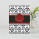 INVITACIÓN DAMASCO ROJO, DORADO Y NEGRO , SELLO DE CERA MONOG