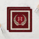 Batalla de laurel perla con marco perla sobre fondo de damasco rojo.