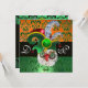 Diseño de monograma elegante, con clase, genial y único para el Día de San Patricio con un sombrero elfico rojo y verde, búhos divertidos y expresivos, tréboles, vibrantes piedras preciosas esmeraldas y flores de damasco naranjas y verdes. Fácil de personalizar con tus iniciales y texto propio como anuncio de fiesta del Día de San Patricio (Día de San Patty), ceremonia de boda, tarjetas de lugar, save-the-date, tarjetas de agradecimiento, despedidas de soltera, cumpleaños, fiestas, fiestas de compromiso, o casi cualquier evento que desees. Modelado y renderizado NURBS muy precisos por Bulgan Lumini (c). Parte de la serie Hyper Talismans.