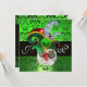 Diseño de monograma elegante, con clase, genial y único para el Día de San Patricio con un sombrero elfico rojo y verde, búhos divertidos y expresivos, tréboles, vibrantes piedras preciosas esmeraldas y flores de damasco blancas y verdes. Fácil de personalizar con tus iniciales y texto propio como anuncio de fiesta del Día de San Patricio (St. Paddy's Day), ceremonia de boda, tarjetas de lugar, save-the-date, tarjetas de agradecimiento, despedidas de soltera, cumpleaños, fiestas, fiestas de compromiso, o casi cualquier evento que desees. Modelado y renderizado NURBS muy precisos por Bulgan Lumini (c). Parte de la serie Hyper Talismans.