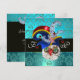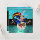 Elegante, con clase, genial y único diseño de monograma con un sombrero Elfic azul verde, búhos expresivos divertidos, tréboles de piedras preciosas rubí vibrante zafiro y flores damasco azul verde aqua. Fácil de personalizar con tus iniciales y texto propio como anuncio de fiesta de cumpleaños, boda, tarjetas de lugar, save-the-date, tarjetas de agradecimiento, despedidas de soltera, fiestas, celebraciones de compromiso, o casi cualquier evento que desees. Modelado y renderizado nurbs muy precisos por Bulgan Lumini (c). Parte de la serie Hyper Talismans.