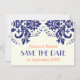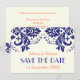 Invitación Damask azul marino, boda coral Save the Date