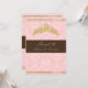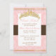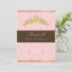 Un tratamiento real para las invitaciones de Dulces Dieciséis de tu princesa. Con tiara dorada con perla. Color de fondo DIY rosa y acento de chocolate.