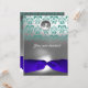Invitación DAMASK GEMA PIEDRA MONOGRAMA cinta azul