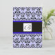 Invitación DAMASK MONOGRAM, negro y blanco, azul
