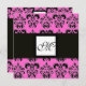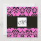 Invitación DAMASK MONOGRAM, negro y blanco, fucsia rosa