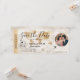 Elegante Billete de tarjeta de embarque de boda de destino Guardar la fecha con elementos de diseño de damasco. Añadir tu foto