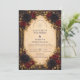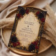 A bold and dramatic design inspired by gothic romance and baroque opulence, featuring deep crimson roses, black dahlias, and rich golden foliage woven into an ornate antique frame. The warm parchment center glows against the dark, moody background, creating a striking contrast that feels both luxurious and timeless. Intricate details and layered florals add depth and intensity, making this design perfect for an unforgettable evening celebration filled with elegance, mystery, and old-world charm.