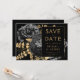Invitación Dark Moody Floral Black Gold Wedding Save the Date