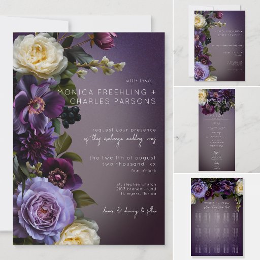 Invitación Dark Moody Purple Lavender Floral Modern Wedding