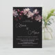 This dark moody romantic wedding invitation features light pink magnolia flowers on a black background. Bride and groom first names in an elegant classic calligraphic script.