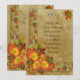 invitación de 25º aniversario tema Otoño. Composición de imagen e ilustración de Hojas, cintas y crisantemos amarillos y naranjas sobre un fondo con aspecto de pergamino rústico. Esta es una imagen impresa sin adornos separados y no requiere franqueo adicional. El texto es personalizable. Se puede utilizar para cualquier ocasión especial, solo cambie el texto para adaptarlo a sus necesidades.