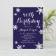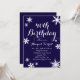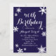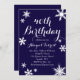 Una salpicadura de copos de nieve decora esta invitación de cumpleaños en invierno, con un fondo azul profundo. Si se necesitan elementos de coordinación adicionales para su evento, póngase en contacto con nosotros en prettyfancyinvites@gmail.com con su solicitud.