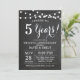 Invitación de 5º Aniversario de Boda. Fondo de Pizarra. Luces de Cadena. Blanco y Negro. 1º, 2º, 3º, 4º, 5º, 10º, 15º, 20º, 25º, 30º, 35º, 40º, 45º, 50º, 55º, 60º, 65º, 70º, 75º, 80º, Cualquier Año. Cumpleaños de Adulto. Cumpleaños de Mujer o Hombre. Fiesta de Cumpleaños de Hombre. Para una mayor personalización, haga clic en el botón "Personalizar" y use nuestra herramienta de diseño para modificar esta plantilla.