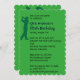 Invitación de cumpleaños de golf con la imagen de una bandera en verde, en la parte trasera muestra un verde con este es mi texto de feliz lugar. Puedes cambiar a cualquier edad de cumpleaños que quieras. toda la información sobre la invitación puede cambiarse a su propia ocasión. marear