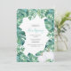 Dile a Belle Los amigos de calabaza blanca y vegetación tropical que dan invitaciones para cenar enmarcan los detalles de su evento con exuberantes verdes acuarela pintados y 2 calabazas blancas. Un azul turquesa a juego adorna la parte posterior de su invitación. Una elección chic tropical pero sofisticada para su Día de Acción de Gracias entre amigos, Día de Acción de Gracias en Palm Beach y cenas de ensayo de otoño en Florida o cualquier ubicación tropical. Para ver más diseños de Victoria Grigaliunas visite www.zazzle.com/dotellabelle