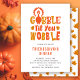 Invita a amigos a disfrutar de Acción de Gracias contigo en tu cena anual de Friendsgiving con esta divertida invitación "Gobble Til You Wobble".