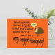 Este diseño es para una cena vegetariana de Acción de Gracias. Hay un pequeño poema que explica sobre todo. El texto está escrito a mano y se supone que debe parecer escrito por la mano de alguien. Un pavo de ojos grandes se siente muy aliviado de no estar en el menú. El pavo dice "¡guau!" en lugar de "gobble". En la parte posterior, puede escribir la información necesaria para los invitados. Por favor, publique un comentario si necesita colores diferentes y haré todo lo posible para cumplir.