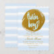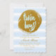 Invitación de acuarela con foil azul y dorado para NIÑOS GEMELOS. Artículos coincidentes disponibles.