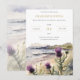 Esta invitación presenta una ilustración original de acuarela digital de cardos que crecen en las orillas de la costa, que es un guiño al mito sobre cómo la flor frustró una invasión vikinga.