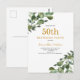 Tarjeta postal de invitación de acuarela de eucalipto para cumpleaños 50. Cambie el texto desde la página del producto.