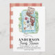 Esta elegante invitación para picnic de reunión familiar presenta un fondo blanco con una cesta de picnic llena de pan y frutas, una tabla de charcutería con queso y carne, y frutas en acuarela. El reverso presenta un fondo blanco con patrones de gingham rojos. Personalízala según tus necesidades. Puedes encontrar productos coincidentes en mi tienda.