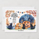 Celebra una reunión mágica de Halloween con esta invitación de temporada acogedora y tenebrosa. Con una característica parcela de calabazas rústicas, estrellas brillantes y gatos negros amistosos en tonos cálidos de naranja quemada, azul medianoche y crema en acuarela. Perfecto para bodas de otoño, fiestas de otoño o eventos de noche de Halloween. Diseño de alta resolución y impresión bajo demanda listo para personalizar con los detalles de su evento.