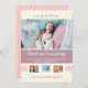 Invitación de adopción de tiras de guardería rosada. Una forma divertida y a la moda de anunciar tu adopción o nacimiento de bebés con una mezcla de rayas amarillas y puntos de polka blancos.