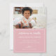 Celebra la llegada de tu hija con esta dulce tarjeta de invitación de adopción. Con un fondo rosado con elegantes tipos de letra serif y script, y un diseño de franja rosa y blanca en la parte de atrás con las palabras: "No carne de mi carne, ni huesos de mis huesos, sino a través del plan de Dios, milagrosamente el nuestro". Todo el texto es personalizable.