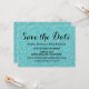 Anuncio de ahorro de fecha con brillo elegante y chic con un fondo de arte digital con aspecto de brillo turquesa. Fácil de personalizar con los detalles de su boda. Para más opciones de personalización, haga clic en el botón Personalizar. //NO ES BRILLO REAL - IMAGEN PLANA IMPRESA DE ARTE DIGITAL//