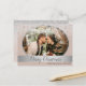 Simple, elegante, adorable tarjeta postal de vacaciones de Navidad con copos de nieve plateados en rosa polvoriento para guardar la fecha de la boda con foto.