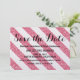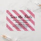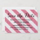 Invitación elegante y de moda para ahorrar fecha con rayas de brillo rosa con un patrón de rayas con brillo falso brillante. Fácil de personalizar con los detalles de su boda.