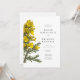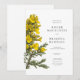 Una ilustración digital original de flores de aliaga amarillas en el estilo de bocetos botánicos vintage se presenta en esta invitación.