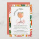 ¡Prepárate para brindar por el amor con un estallido de felicidad cítrica! Esta invitación de 5x7 es tan fresca y animada como el primer sorbo de un spritz perfecto: tonos brillantes de naranja y pomelo resaltan contra un fondo burbujeante y elegante, capturando la alegría efervescente del momento.