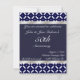 Esta hermosa invitación de aniversario es perfecta para su aniversario de bodas, cuenta con un patrón geométrico azul y blanco en la parte superior e inferior. Un centro azul sólido tiene texto blanco listo para la información personalizada de su fiesta. Las bandas de plata corren a lo largo de la parte superior e inferior para darle brillo. Personalice según las necesidades de su fiesta.