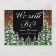 Tarjeta postal de invitación de aniversario de bodas "Aún lo hacemos". Madera marrón rústica, fondo nevado y bosque nevado. Acogedor estilo campestre vintage. Hay más artículos disponibles en este estilo en nuestra tienda. Puede editar el diseño aún más, cambiar colores, fuentes y agregar texto adicional haciendo clic en el enlace "personalizar más".