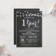 Invitación de aniversario de bodas. Fondo de pizarra. Luces de cuerda. Blanco y negro. 1er, 2do, 3er, 4to, 5to, 10mo, 15to, 20mo, 25to, 30mo, 35to, 40mo, 45to, 50mo, 55to, 60mo, 65to, 70mo, 75to, 80mo, Cualquier año. Cumpleaños de adulto. Fiesta de cumpleaños de mujer o hombre. Para una mayor personalización, haga clic en el botón "Personalizar" y use nuestra herramienta de diseño para modificar esta plantilla.