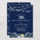 Invitación de Aniversario de Boda de Jardín Nocturno Navy & Gold. Hermosa tipografía dorada, luces de cadena y corona de flores. Puedes personalizarlo para cualquier edad.