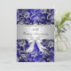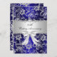 Invitación de aniversario. Floral plateado y azul con lazo de joya blanca. Exclusivo Zazzle. Personaliza con tus propios detalles. POR FAVOR TENGA EN CUENTA que todas las imágenes planas! NO tienen lazos, diamantes o joyas reales!!