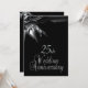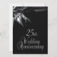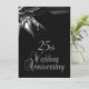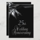 Invitaciones de aniversario de bodas negras únicas para una recepción/fiesta de aniversario de bodas de 25 años. Parte delantera y trasera negra con texto plateado en la parte trasera que da un aspecto elegante a esta invitación de aniversario de cortesía.