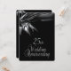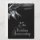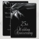 Invitaciones de aniversario de bodas negras únicas para una recepción / fiesta de aniversario de bodas de 25 años. Frente y dorso negros con texto plateado en la parte posterior que da un aspecto elegante a esta invitación de aniversario de cortesía.