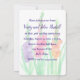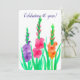 Una invitación de fiesta de aniversario de bodas floral decorada con tres vibrantes flores de gladiolo en púrpura, rosa y naranja con hojas verdes brillantes pintadas a mano con acuarela. En el lenguaje de las flores, el gladiolo significa "me traspasas el corazón" y fuerza de carácter. También es la flor tradicional del 40º aniversario.